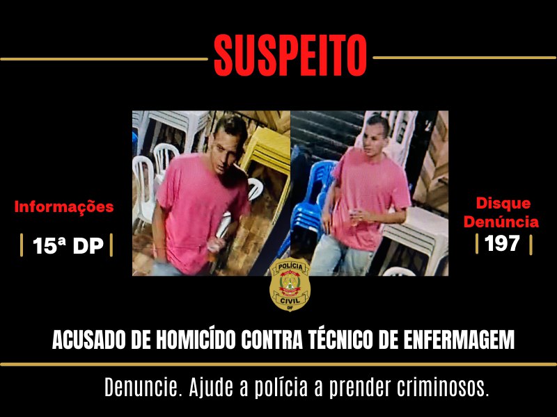 O principal suspeito foi visto por sistemas de videomonitoramento em que ele aparece caminhando em via pública. A PCDF disponibiliza vários canais on-line de denúncia pelo site oficial: www.pcdf.df.gov.br e ainda o Disque-Denúncia (197), ligação gratuita.