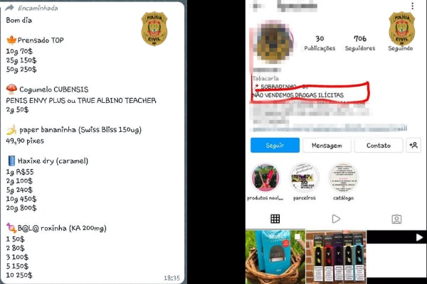 O criminoso tinha um cardápio virtual para atender os clientes e,como bônus para fidelizar clientes, o traficante informava que a entrega era grátis em algumas regiões.