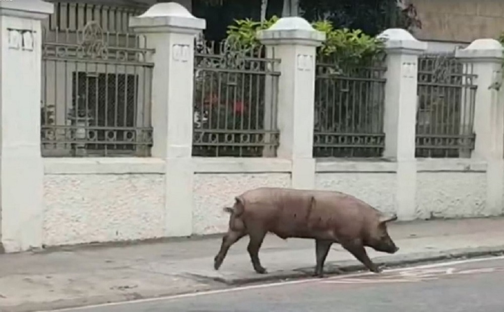 Por volta das 6h desta quinta-feira (22), um porco foi flagrado andando próximo à sede do governo estadual do Rio de Janeiro. O animal chamou a atenção de diversos motoristas e moradores da região.