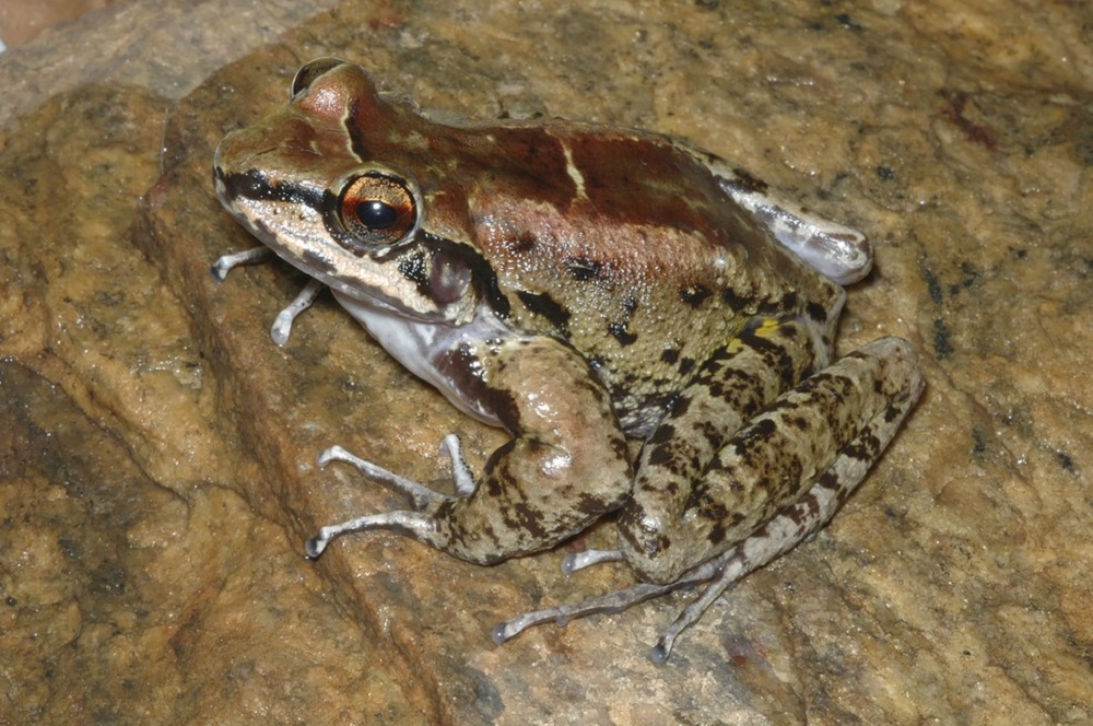 Esses sapos preferem ficar em pedras e têm uma coloração marrom-avermelhada que os ajuda a se camuflar no ambiente. Os machos têm espinhos longos nos polegares, que usam em combate.