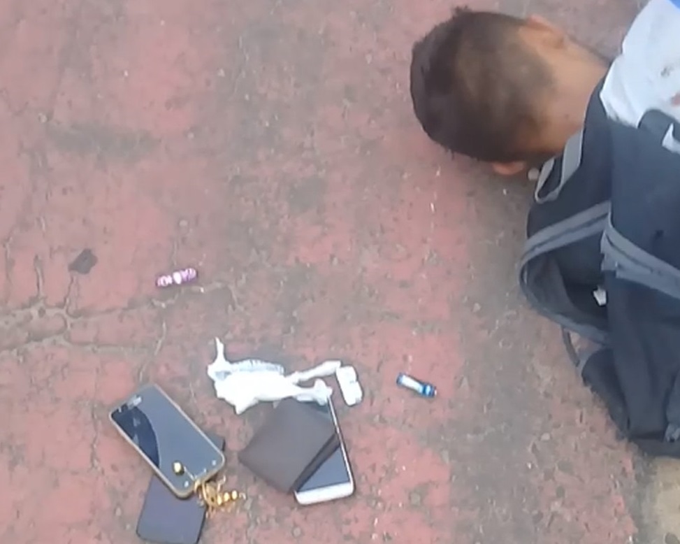 A polícia encontrou o homem caído em frente a uma unidade policial. Com ele, foram encontrados um revólver .38 com três munições, quatro celulares, uma carteira e um cordão de ouro.
