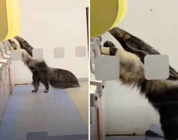 Um tamanduá-bandeira protagonizou uma cena inusitada ao ser flagrado dentro de uma agência bancária de Santo Antônio do Descoberto, no Entorno do Distrito Federal. O animal foi visto em pé, em frente a um caixa eletrônico, na terça-feira (31), e as imagens rapidamente se espalharam pelas redes sociais, arrancando risadas e comentários bem-humorados dos internautas.