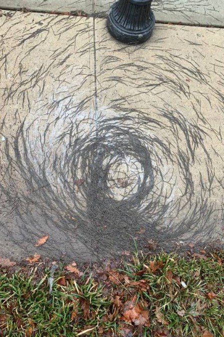 Cientistas estudam a misteriosa formação em espiral. Um dos fenômenos apareceu em uma calçada de concreto, ao lado de fora de um prédio residencial e foi avistado por uma moradora, na manhã da última quinta-feira (25/3).