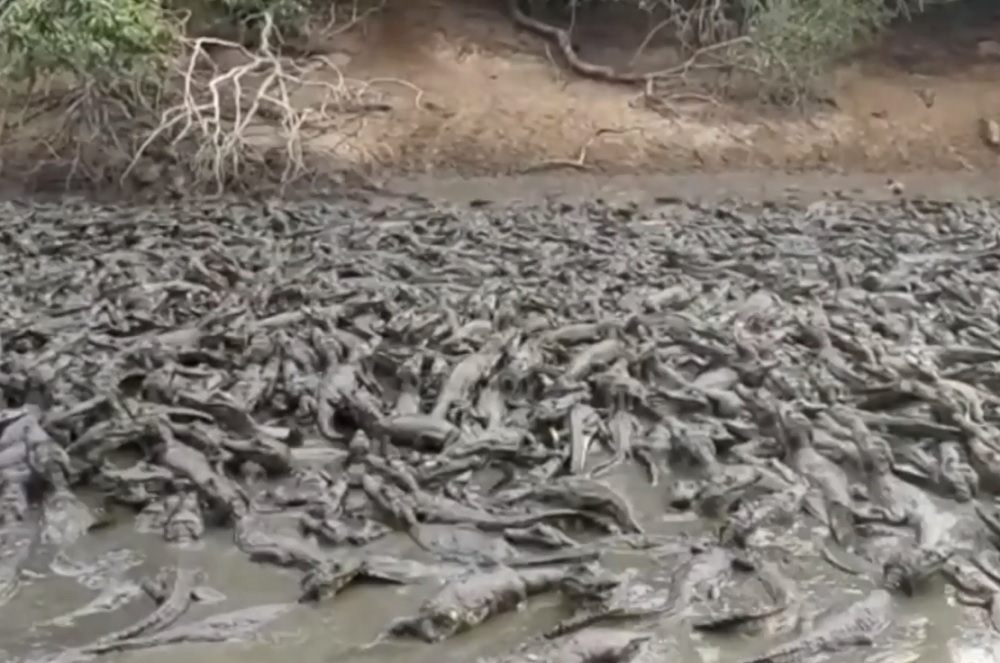 “Tenho muitos anos de Pantanal e nunca na minha vida vi tantos jacarés em um lugar só”, afirma o pantaneiro no vídeo.