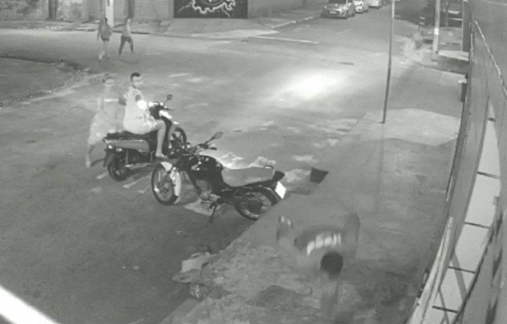 Nas imagens é possível ver o suspeito se aproximar da vítima, no Bairro Padre Andrade. O motociclista, que estava acompanhado de um mulher, disparou contra a vítima. O entregador fugiu correndo e não foi atingido pelo disparo.