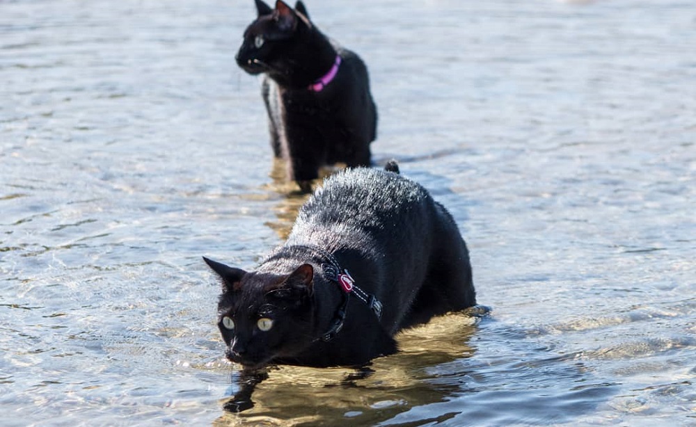 As gatas australianas Nathan e Winnie passam parte do tempo nas praias de Gold Coast, onde moram. Ao contrario da maioria dos gatos, elas amam entrar na água, além de brincar na areia e fazer trilhas com seus tutores.