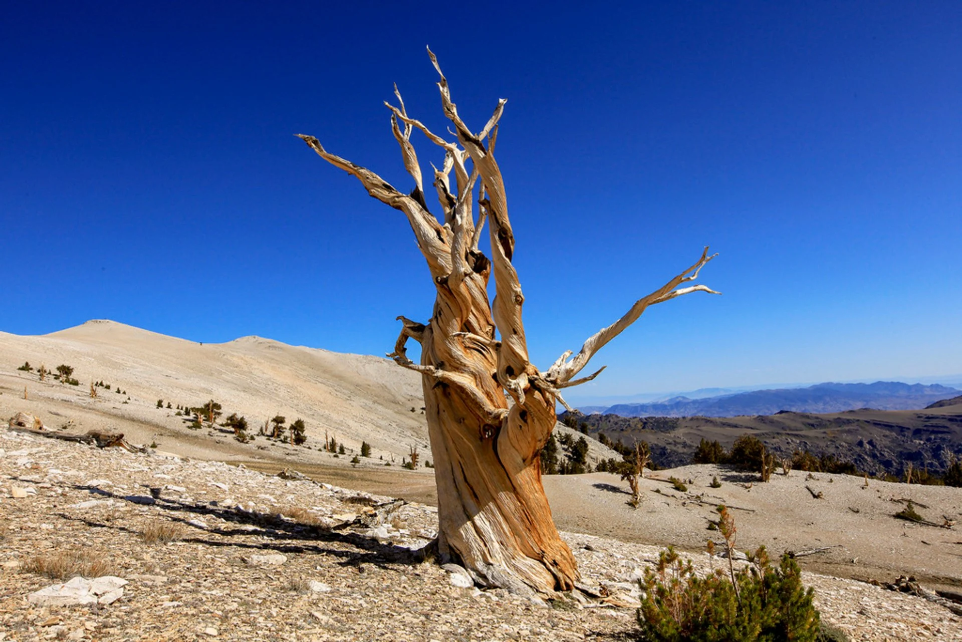 Nas White Mountains da Califórnia central, a 3.000 metros de altitude, num deserto alpino árido onde poucos outros seres conseguem viver, há bosques de pinheiros majestosos e retorcidos da espécie Great Basin bristlecone (Pinus longaeva), alguns dos quais sobrevivem há quase 5.000 anos. Seus troncos multicoloridos se dobram em ângulos que desafiam a gravidade e seus ramos pelados se projetam em direção ao céu, como se tivessem saído da imaginação de Tim Burton ou J.K. Rowling.
