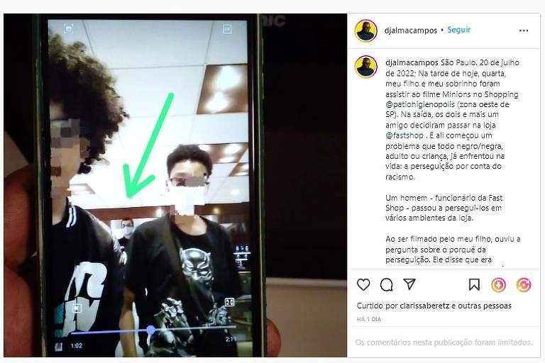 O criador de conteúdo também escreveu em seu perfil que a Fast Shop pediu que sua irmã ligasse no dia seguinte (nesta quinta-feira), para detalhar o caso, que eles dizem ter ocorrido devido ao racismo estrutural.