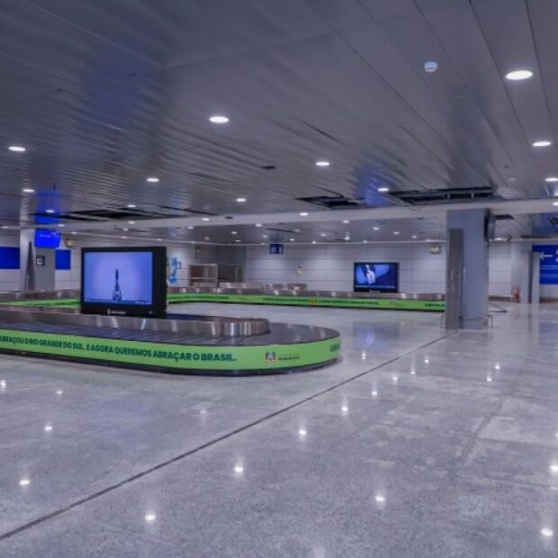 Inundado pela enchente histórica que atingiu Porto Alegre no início de maio, o aeroporto ficou quase três semanas com água no primeiro pavimento. A drenagem da água na pista foi realizada com o apoio de bombas emprestadas por arrozeiros do sul do estado.