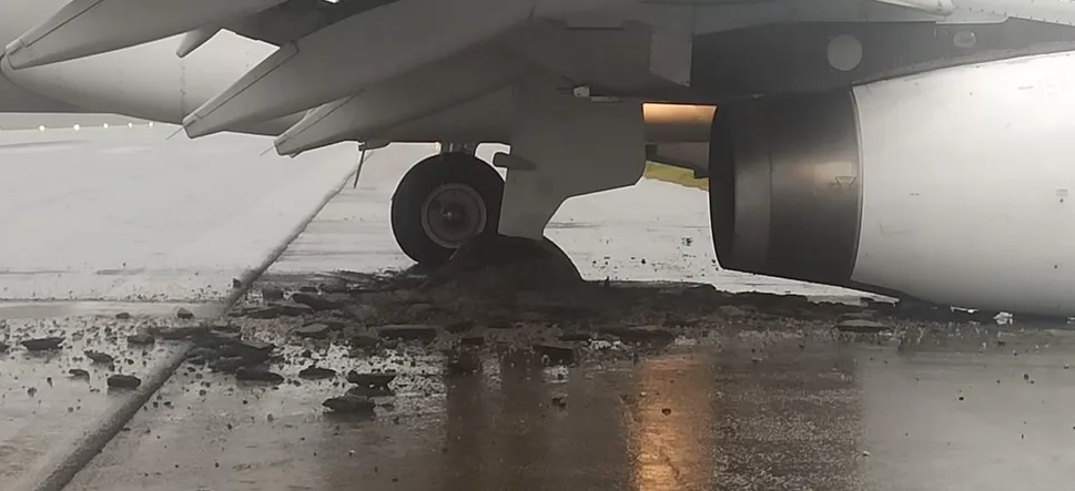 Equipes operacionais da Latam e do Aeroporto de Florianópolis trabalham para remover o avião e liberar a pista.