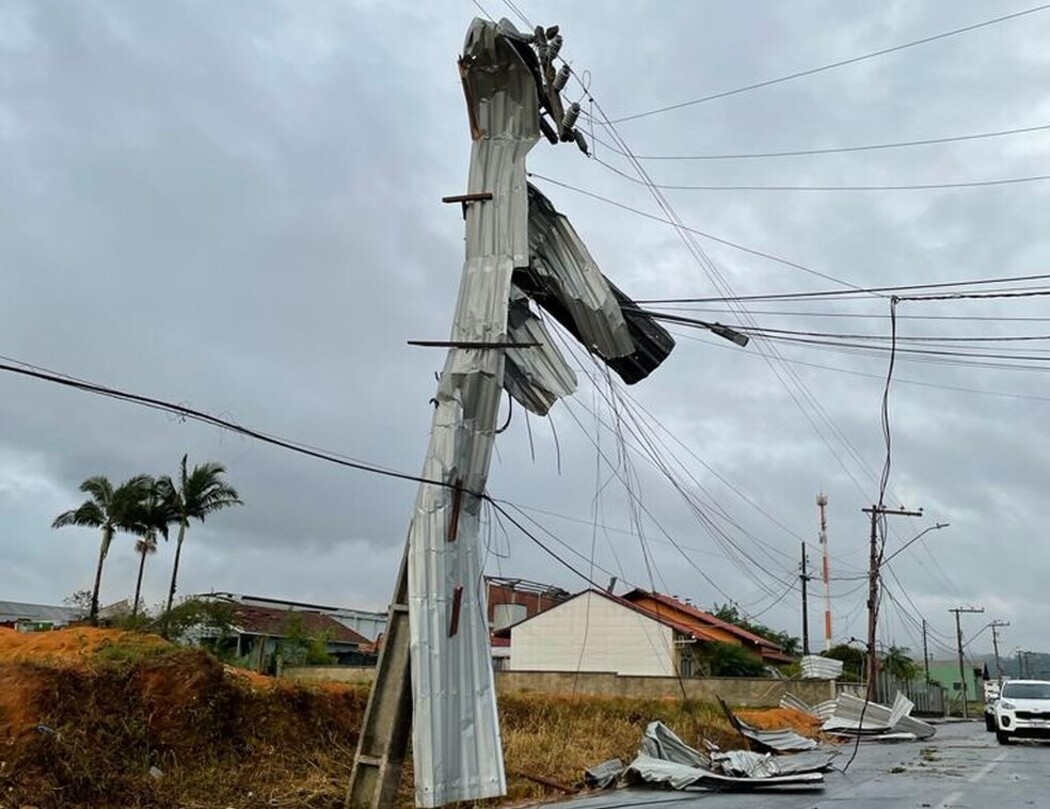 “Esta condição atmosférica favoreceu o desenvolvimento de áreas de instabilidade que ocasionaram temporais acompanhados de chuva intensa, descargas elétricas (raios), rajadas de vento e nas regiões do centro leste catarinense e o destaque para a ocorrência de um tornado no Médio Vale do Itajaí”, diz o documento.