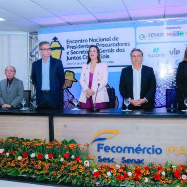 Entre as autoridades presentes, estavam a presidente da FENAJU, Gregória Benário, o presidente da Junta Comercial anfitriã, Sérgio Sombra, o secretário estadual da Fazenda, Marcellus Ribeiro, a diretora do Departamento de Registro Empresarial e Integração (DREI), Flávia Brito, o presidente da Fecomércio, Maurício Feijó, a secretária de Estado de Indústria e Comércio, Karina Fonseca, a gerente Regional da Suzano, Raquel Moura, o delegado da Receita Federal, Carlos Eduardo, além do presidente da OAB-MA, Kaio Saraiva.