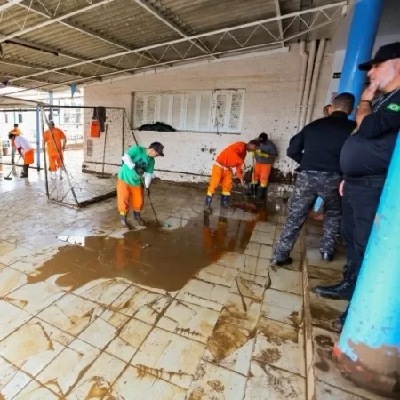 Detentos de unidades de Venâncio Aires, Charqueadas, Montenegro, Bento Gonçalves, Guaporé, Encantado, Arroio do Meio e Lajeado foram mobilizados na ação de limpeza em escolas das cidades do Vale do Taquari.