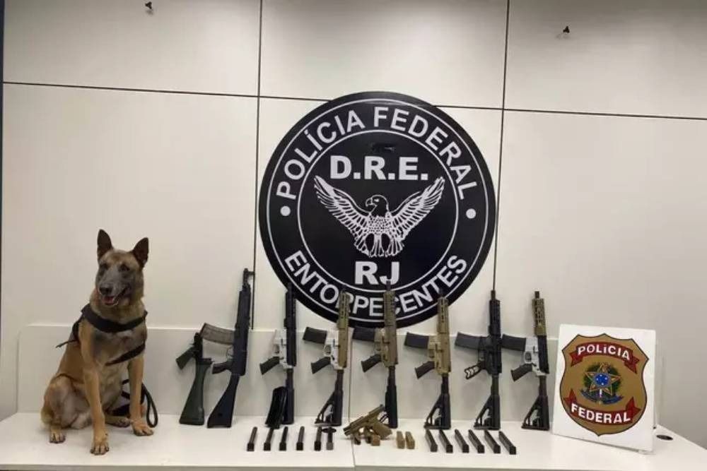 O rapaz, cujo nome não foi divulgado, foi abordado por policiais federais da Delegacia de Repressão a Drogas (DRE/RJ) com o apoio do cão farejador Apollo, responsável pela identificação das armas.
