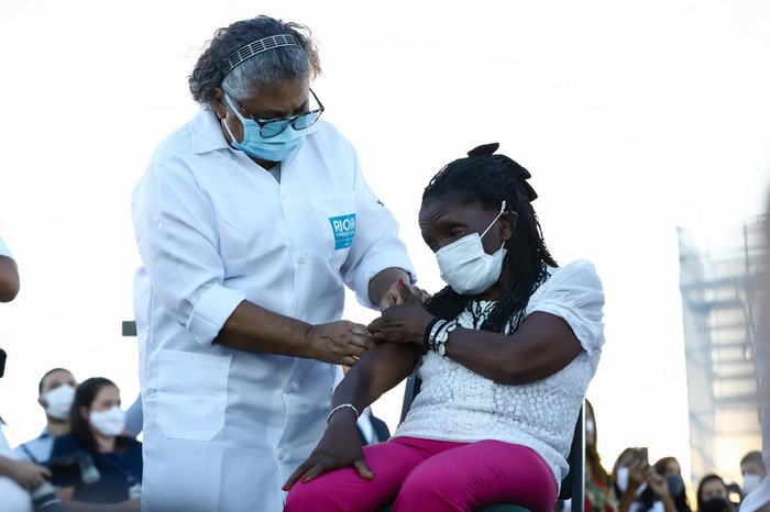 Além de Terezinha, a técnica de enfermagem Dulcineia da Silva Lopes também recebeu uma dose da vacina em frente ao monumento. Ela, que tem 59 anos, atua desde o início da pandemia na linha de frente no Hospital Ronaldo Gazolla, que é referência no combate à covid-19 no Rio.