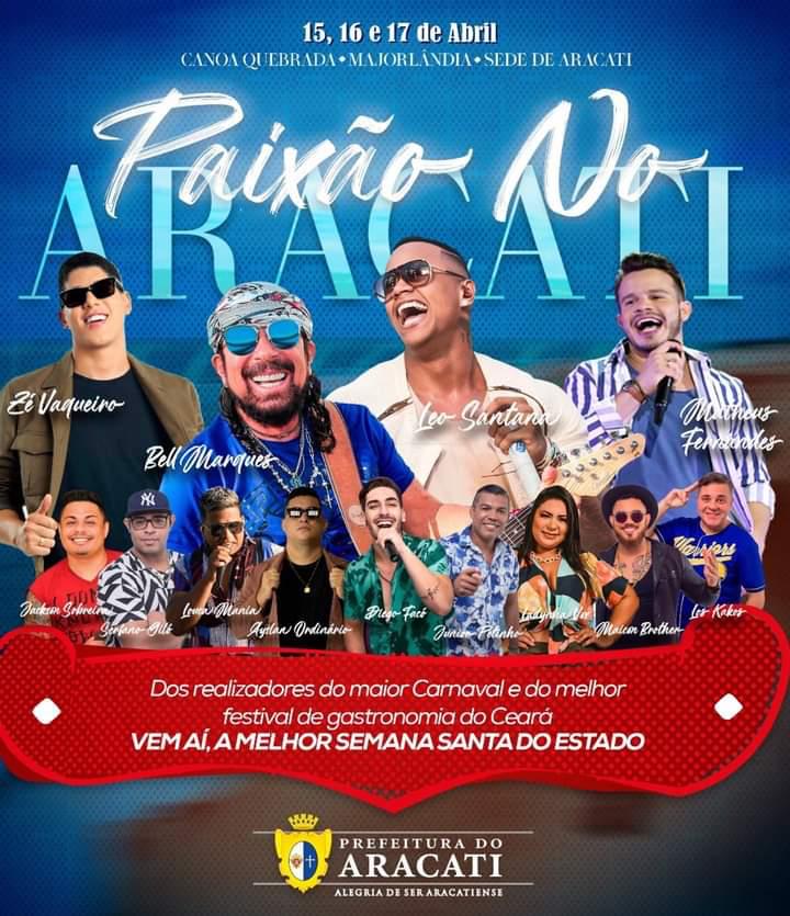 O evento está programado para acontecer entre os dias 15 e 17 de abril em um palco montado na Igreja Matriz de Nossa Senhora do Rosário, no Município de Aracati (CE). A programação conta com shows de Bell Marques, Léo Santana, Zé Vaqueiro, Matheus Fernandes e Diego Facó, além das bandas regionais.
