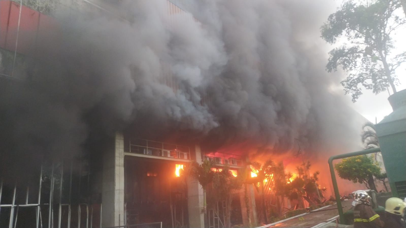 O fogo atingiu dois andares da sede. Os bombeiros conseguiram controlar as chamas para que elas ficassem somente nos dois pavimentos. “No momento, as chamas estão sob o controle”, afirma o Corpo de Bombeiros.