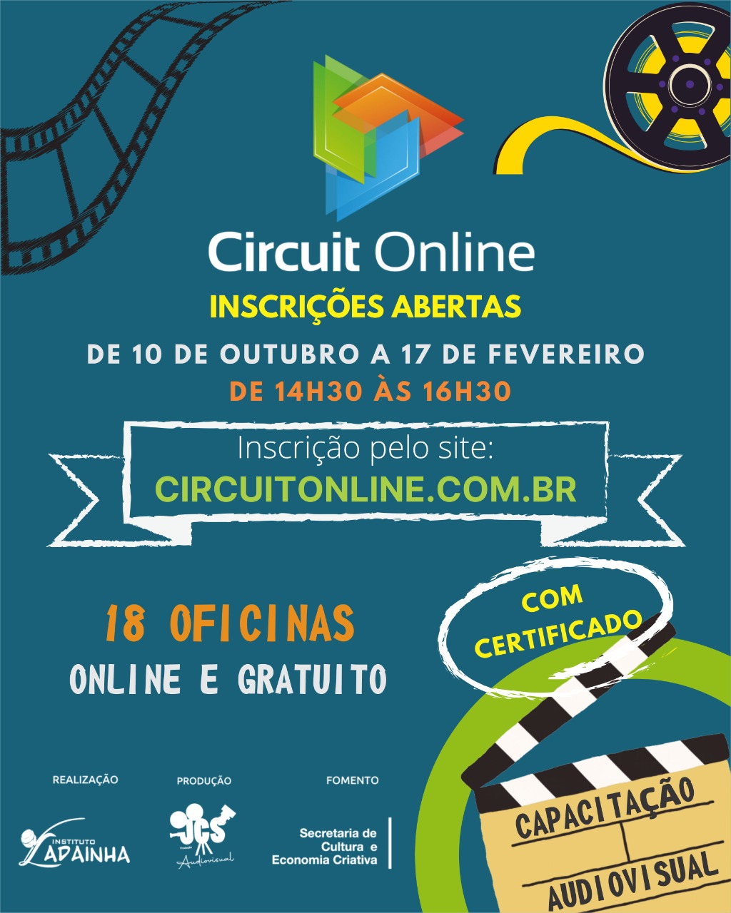 Já pensou em trabalhar com edição de vídeos, streaming, produção de videoclipes para internet ou animação? O Projeto Circuit Online, fruto de parceria entre a Secretaria de Cultura e Economia Criativa (Secec) e o Instituto Ladainha, está com inscrições abertas para capacitação em audiovisual. São 18 oficinas gratuitas e online voltadas para jovens e adultos de 14 a 60 anos. As aulas do primeiro curso começam na próxima segunda-feira (10).