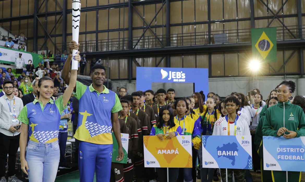Os Jogos Escolares Brasileiros (JEBs) 2022 foram abertos no Rio de Janeiro na noite desta quinta-feira (3). A cerimônia foi realizada na Arena da Juventude, no Complexo Esportivo de Deodoro, com as presenças dos ministros da Cidadania, Ronaldo Bento, e da Educação, Victor Godoy, além de ex-atletas olímpicos brasileiros.