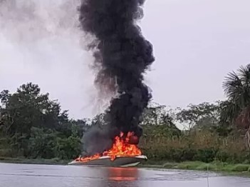 Informações preliminares apontam que a lancha era de Pablo e que a explosão teria acontecido no momento em que ele tentou dar partida na embarcação para chegar a outra margem do lago.