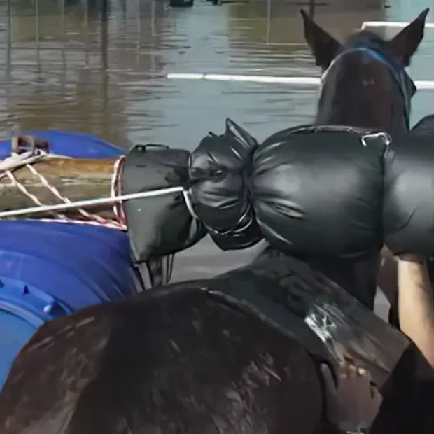 Entre os animais resgatados, está o cavalo apelidado de Caramelo, devido à cor de sua pelagem, que estava ilhado em cima de um telhado no bairro Mathias Velho, em Canoas. Os regaste foi realizado pelos militares do Corpo de Bombeiros de São Paulo, com auxílio da Brigada Militar do estado, na quinta-feira (8).
