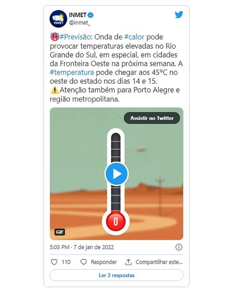 Segundo Sias, as temperaturas ficarão entre 10ºC e 15ºC acima da média para esta época do ano. Em seu artigo, a meteorologista ratificou a previsão do Inmet e alertou que cidades do Rio Grande do Sul podem registrar até 45ºC.