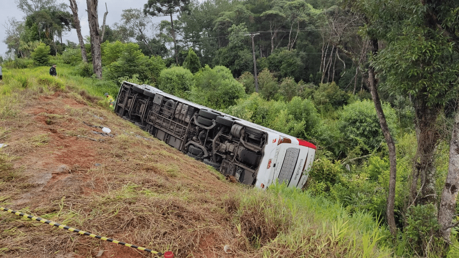 De acordo com a PRF, o veículo saiu da pista na altura de Fernandes Pinheiro (PR), por volta de 1h50. A dinâmica que levou ao tombamento ainda não foi divulgada.