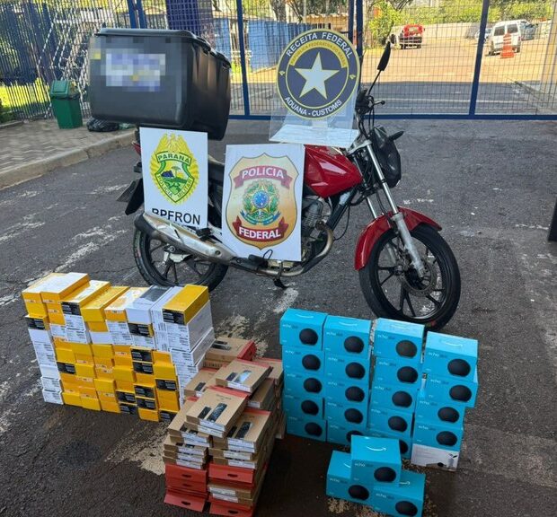 Uma ação integrada envolvendo a Polícia Federal, forças policiais e servidores da Receita Federal do Brasil resultou, na manhã desta segunda-feira (26), na apreensão de centenas de produtos eletrônicos introduzidos ilegalmente no país em um hotel situado nas proximidades da aduana da Ponte Internacional da Amizade, em Foz do Iguaçu.