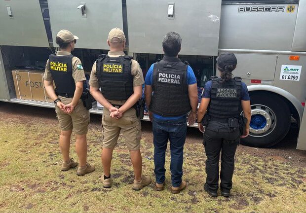 Uma ação integrada da Polícia Federal e da Receita Federal do Brasil resultou na apreensão de dois ônibus que transportavam grande quantidade de mercadorias introduzidas ilegalmente no país. A fiscalização ocorreu na terça-feira (27), na região oeste do Paraná.