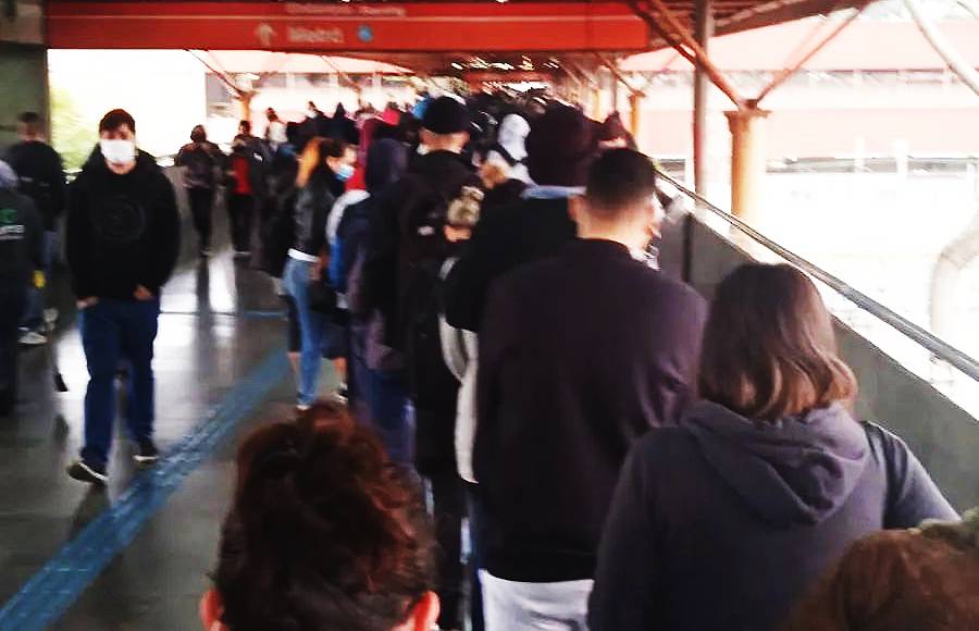 “Se as pessoas tivessem um pouco mais de consideração, tinha dado”, diz Tereza a uma mulher ao seu lado no ponto, após desistir de tentar entrar em um ônibus lotado, chance que não perdeu no coletivo seguinte. Ela iria para o terminal Barra Funda, na zona oeste, e de lá veria como chegaria à empresa onde trabalha na linha de produção na rua Estados Unidos, também na zona oeste.