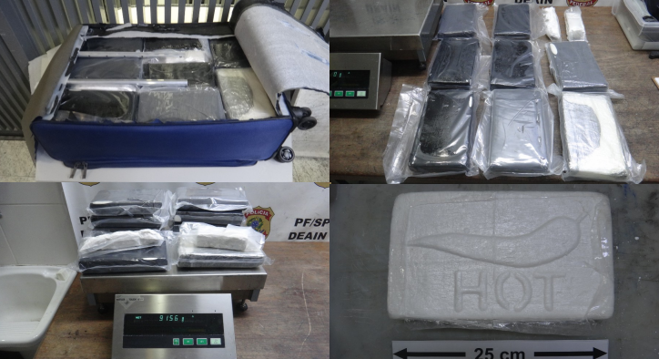 Houve ainda uma ocorrência com dois brasileiros: um que pretendia embarcar para Paris, na França, e outro para Porto Francisco, em Portugal. Ambos foram presos com mais de doze quilos de cocaína em fundos falsos, que foram localizados em suas respectivas bagagens.