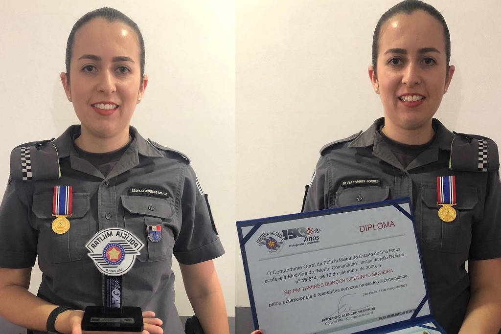 A soldado então ganhou da PM a Medalha do Mérito Comunitário por apoiar uma pessoa que precisava de ajuda.
