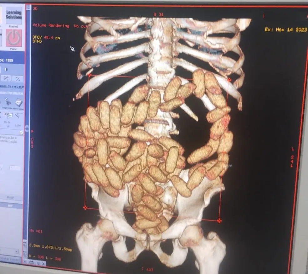 O homem mantia nessa casa outras 33 pessoas que estavam sendo treinadas para agirem como “mulas”, engolindo drogas para o transporte delas para a Europa.