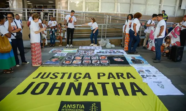 Antes do julgamento nesta terça, mães de vítimas, familiares e integrantes de vários movimentos e organizações fizeram um ato na porta do Tribunal de Justiça do Rio. A mãe de Jonatha disse que lutava por justiça há quase 10 anos e esperava que o policial fosse responsabilizado pela morte do filho.