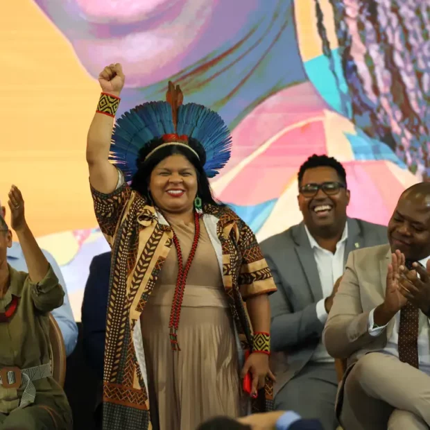 O presidente da COP30, André Corrêa do Lago, e as ministras Marina Silva (Meio Ambiente) e Sônia Guajajara (Povos Indígenas) receberam manifestantes indîgenas munduruku nesta sexta-feira (14).