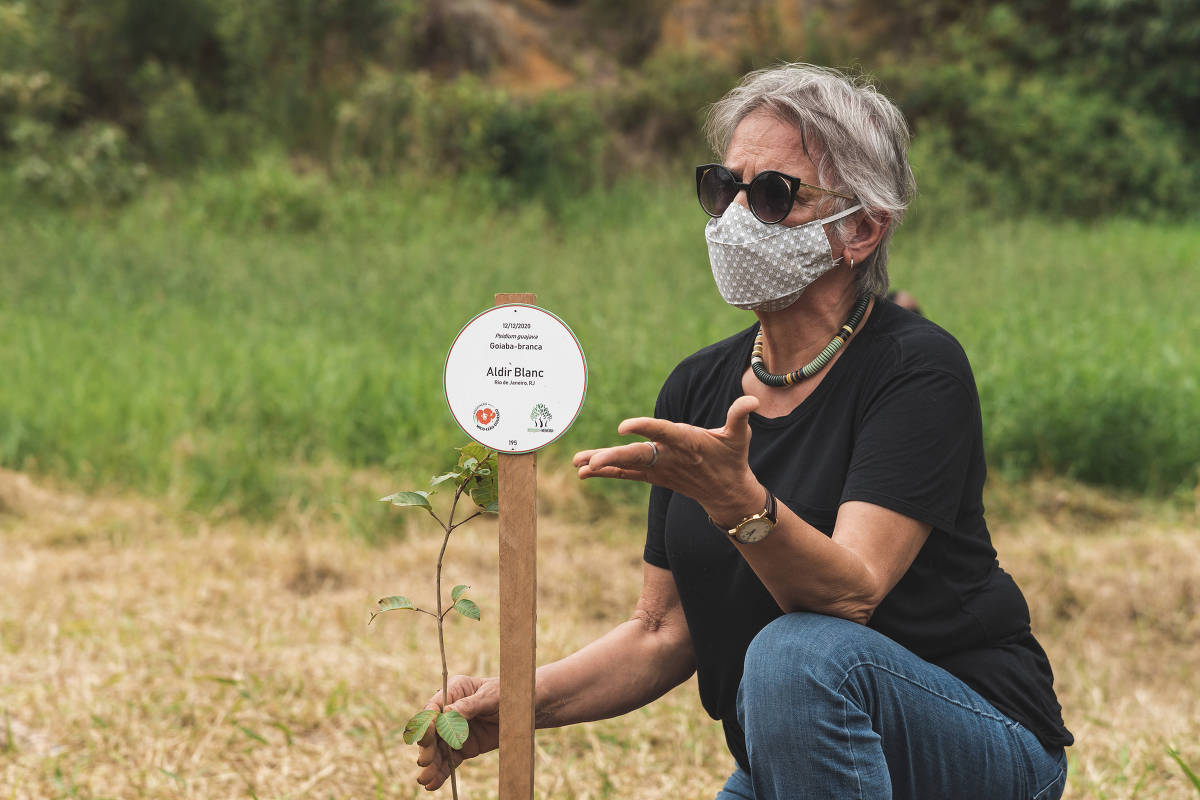 Em alguns plantios, as mudas recebem uma placa com o nome da pessoa homenageada. Foi assim que uma goiabeira branca –espécie não nativa, mas já incorporada à mata atlântica– passou a se chamar Aldir Blanc, no bosque plantado pela Associação Mico-Leão-Dourado, em Silva Jardim (RJ).