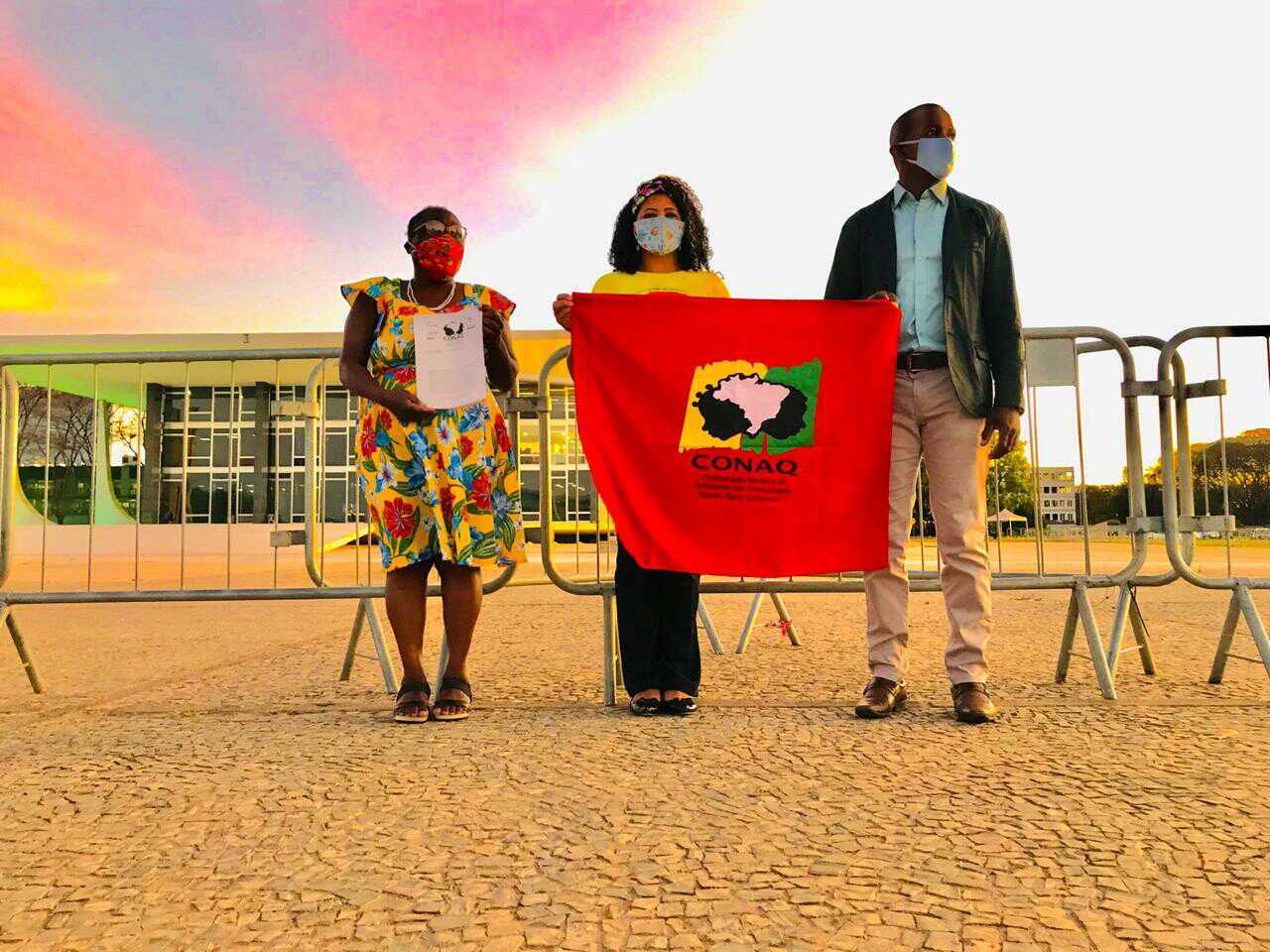 Diante do ocorrência e do agravamento dos casos de Covid-19 em comunidades quilombolas e da inequívoca vulnerabilidade a que elas estão expostas, a CONAQ decidiu acionar o Supremo Tribunal Federal (STF), no último dia 9, com uma Arguição de Descumprimento de Preceito Fundamental (ADPF), que obriga o Governo Federal a elaborar um plano emergencial de enfrentamento à pandemia para as comunidades quilombolas. A ação é um pedido urgente da CONAQ para garantir, em especial, o acesso à saúde, a promoção da segurança alimentar e a não realização de medidas relacionadas à questão territorial que possam impactar no isolamento das famílias, ampliando possibilidades de contágio.
