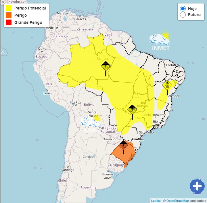 De acordo com o Instituto Nacional de Meteorologia (Inmet), a região segue com alerta de grande perigo para chuvas, e a temperatura deve cair nos próximos dias.