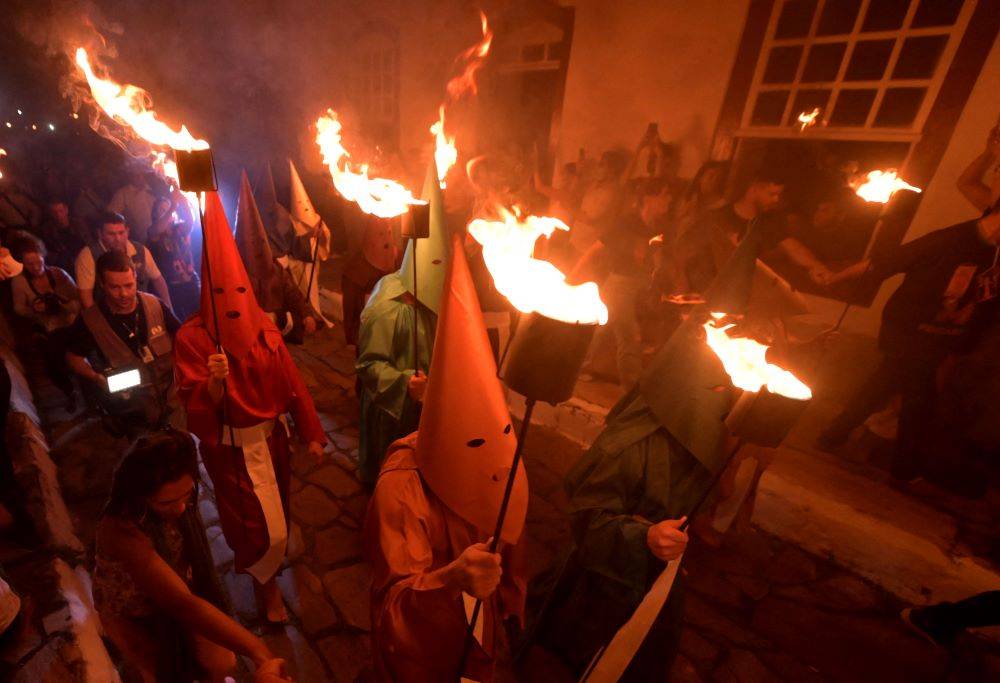 A Procissão do Fogaréu, realizada há 277 anos, representa a perseguição e prisão de Jesus Cristo pelos soldados romanos e faz parte das celebrações da Semana Santa. A apresentação ocorre sempre à meia-noite da quinta-feira santa, quando tambores anunciam a chegada de farricocos vestidos com túnicas coloridas e chapéu simbolizando os soldados.