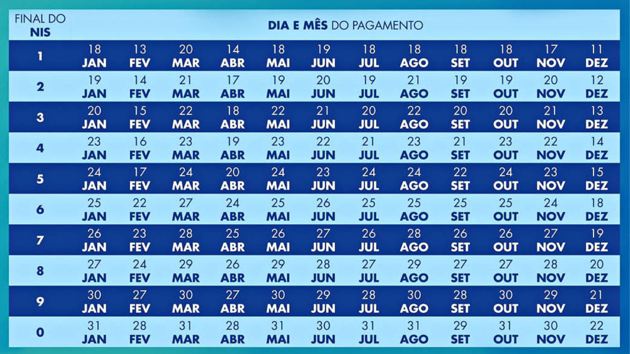 Os primeiros pagamentos de 2023 serão feitos entre os dias 18 e 31 de janeiro. Se o NIS do titular termina com o número 1, em janeiro, por exemplo, os pagamentos começam no dia 18.