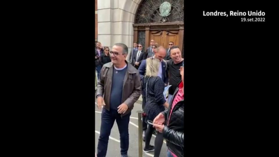 A cena ocorreu pouco após Bolsonaro voltar à residência do embaixador depois de uma recepção promovida pela chancelaria britânica. Ali também estavam o pastor Silas Malafaia e o deputado federal Eduardo Bolsonaro (PL-SP).