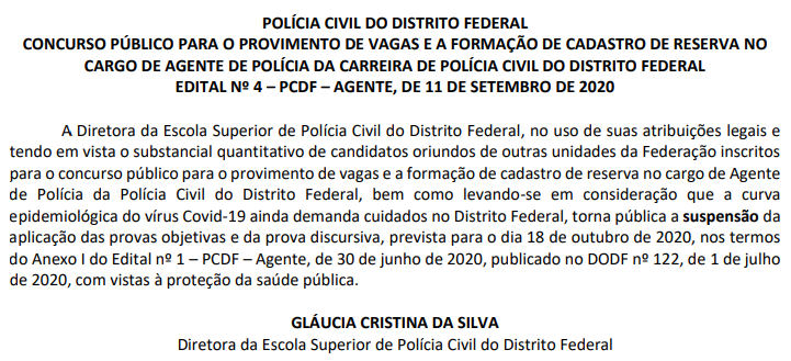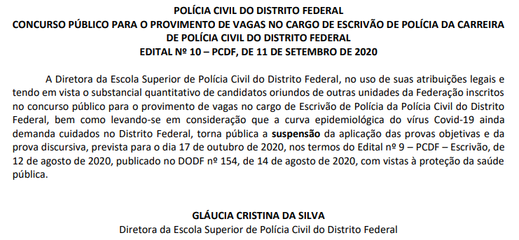 “Não há previsão de nova data. Quaisquer atualizações a respeito do certame serão amplamente divulgadas pela PCDF e pelo Cebraspe, entidade organizadora do concurso”, finaliza a PCDF por meio de nota.