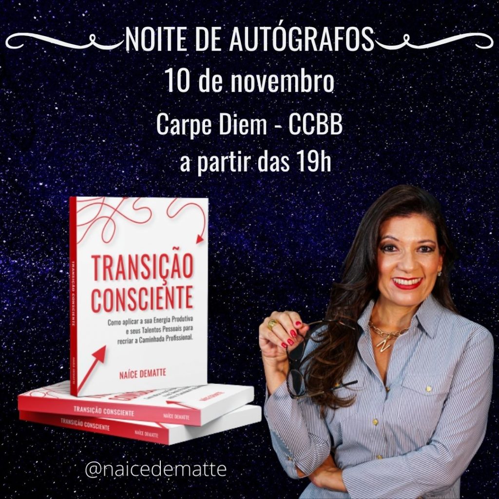 Mais do que tomar a decisão de mudar de carreira é importante ter consciência de como fazer essa transição, que pode e deve ser realizada de maneira positiva. Essa jornada pode ser um recomeço em qualquer fase da vida, não apenas profissional mas também pessoal, é o que demonstra a autora Naíce Dematte no livro “Transição Consciente – Como aplicar a sua Energia Produtiva e seus Talentos Pessoais para recriar a Caminhada Profissional”, a ser lançando nesta quarta, 10 de novembro, em Brasília.