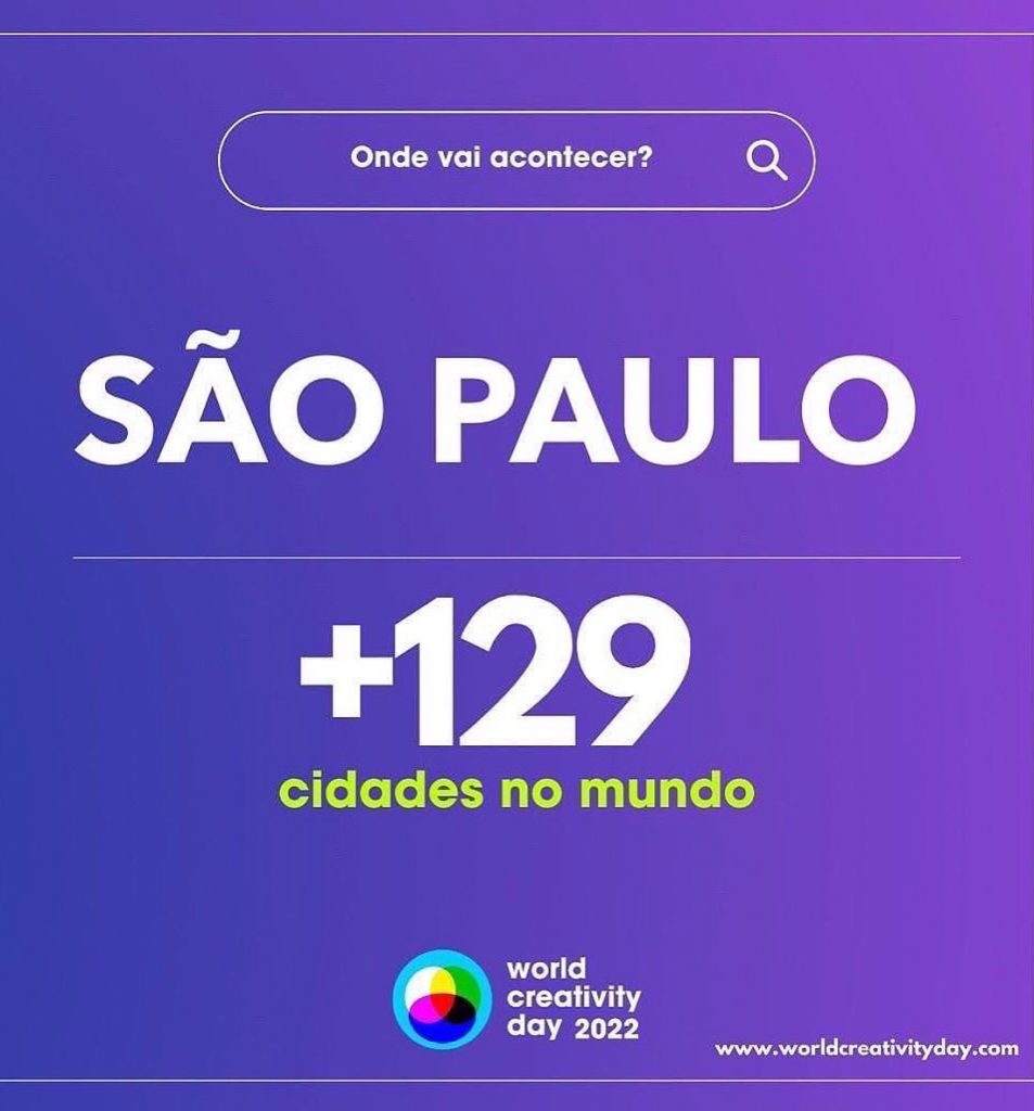 O Dia Mundial da Criatividade/World Creativity Day, festival colaborativo que é celebrado em abril simultaneamente em dezenas de cidades do mundo, está com as inscrições abertas para quem quer realizar atividades nos três dias do evento, dias 20, 21 e 22 de abril. As inscrições estão abertas até o dia 18 de março, e podem ser feitas neste link: https://app.worldcreativityday.com/pt/brazil/sao-paulo/inspirer/apply .