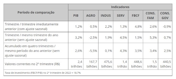 O crescimento foi acima do esperado. A expectativa era de que o PIB aumentasse 0,9% no segundo trimestre de 2022. Em relação ao mesmo período de 2021, o avanço foi de 3,2% – a expectativa era de uma alta de 2,8%.
