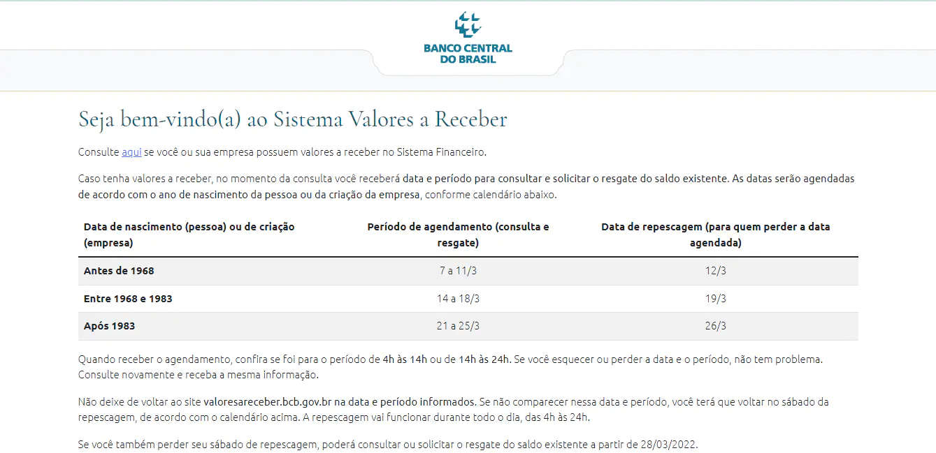 - Acesse o site valoresareceber.bcb.gov.br