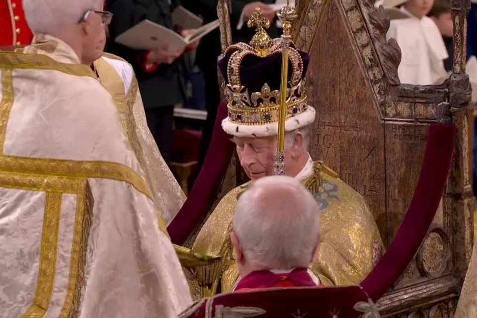 Na passagem da carruagem em que o rei Carlos III, acompanhado da rainha Camilla, se dirigiu à sua coroação em Londres, Anna Edwards exibiu um cartaz com a frase “Not my king!” (Não é meu rei), ao invés de agitar a bandeira britânica.