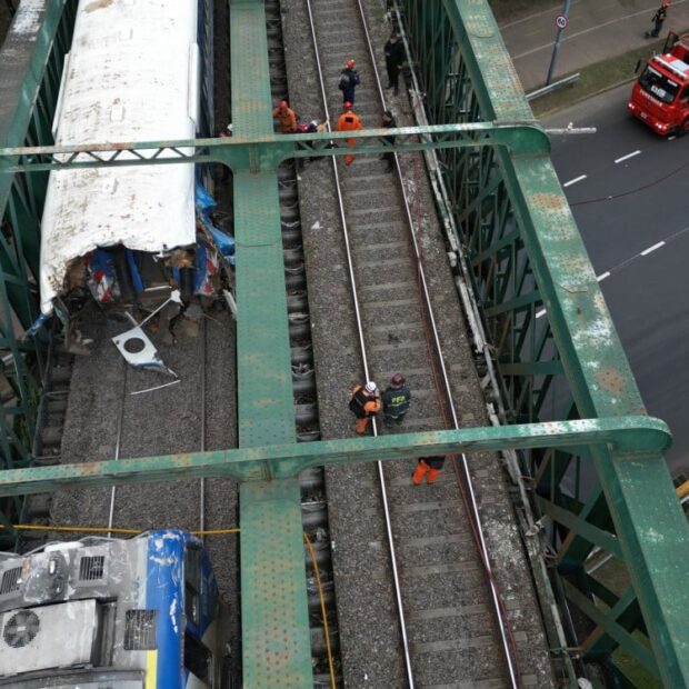 A empresa Trenes Argentinos informou, em um comunicado, que o acidente aconteceu quando um trem de passageiros com sete vagões “colidiu com uma locomotiva e um vagão de carga vazio” no viaduto Palermo.
