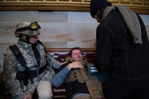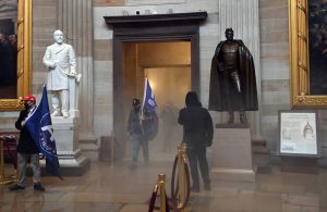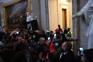- Supporters of US President Donald Trump protest in the US Capitol Rotunda on January 6, 2021, in Washington, DC. – Demonstrators breeched security and entered the Capitol as Congress debated the a 2020 presidential election Electoral Vote Certification. (Photo by SAUL LOEB / AFP)
