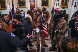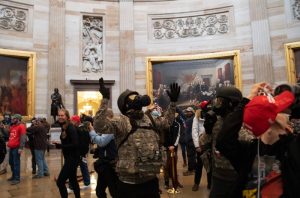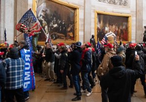 - Supporters of US President Donald Trump protest in the US Capitol’s Rotunda on January 6, 2021, in Washington, DC. – Demonstrators breeched security and entered the Capitol as Congress debated the a 2020 presidential election Electoral Vote Certification. (Photo by Saul LOEB / AFP)